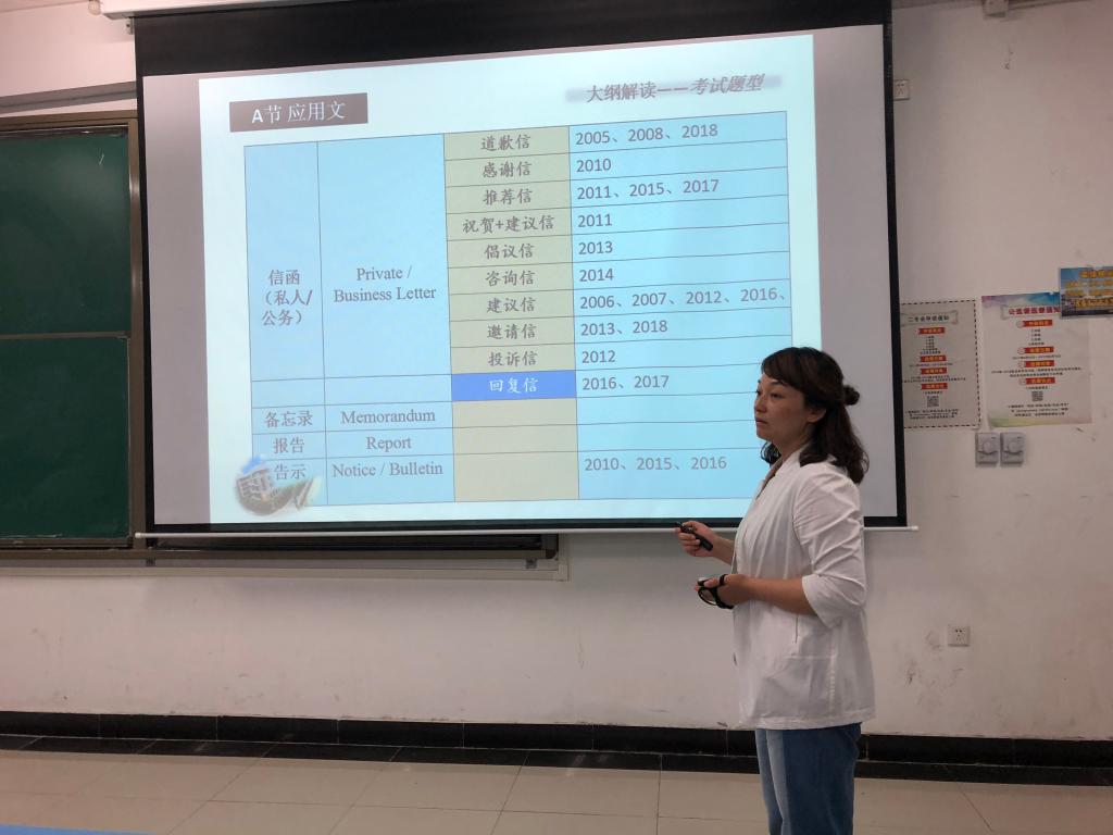 太阳成集团122ccvip助力考研英语系列讲座的第四讲于5月24日下午和晚上分别在英才校区和龙子湖校区进行。本次讲座的主题为考研英语高分写作技巧,主讲人为后续课程教研室主任杨梅老师。