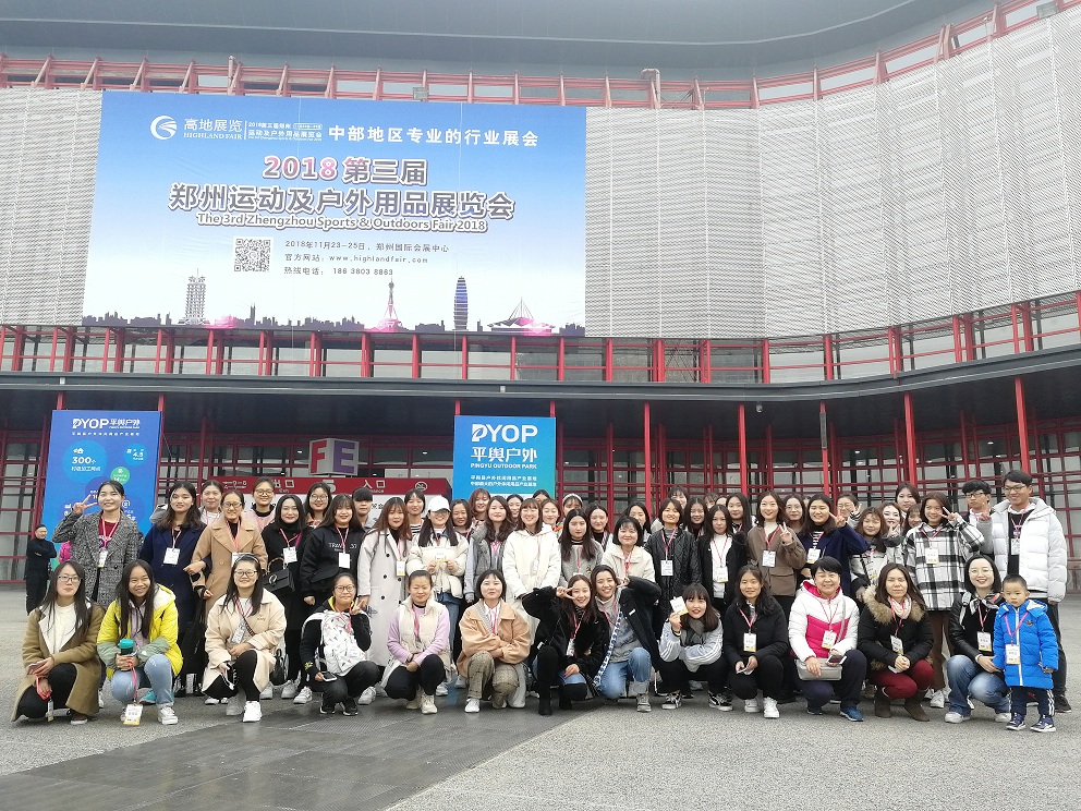 11月24日,时逢“2018第三届郑州运动及户外用品展览会”召开之际,太阳成集团122ccvip应用英语(国际会展方向)专业教研室组织18级120名同学赴郑州国际会展中心开展专业认知活动。教研室主任张明梅和专业教师姜小红、烟小康到现场指导。