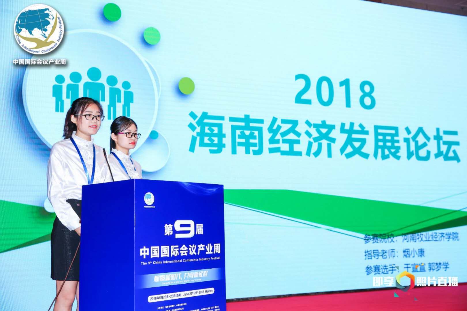 太阳成集团122ccvip代表队由17级应用英语专业学生郭梦学、于宣宣组成,应用英语(国际会展方向)专业教研室主任张明梅负责,烟小康担任指导老师。参赛的项目为“2018海南经济发展论坛”,师生齐心合力,琢磨细节,研究方案,制作作品,在会展专业本科院校云集的该次比赛中,我校提交的作品立意新颖,紧跟时代,贴近实际,极具操作性和实用性,得到了评委们一致认可和高度赞赏,荣获铜奖。