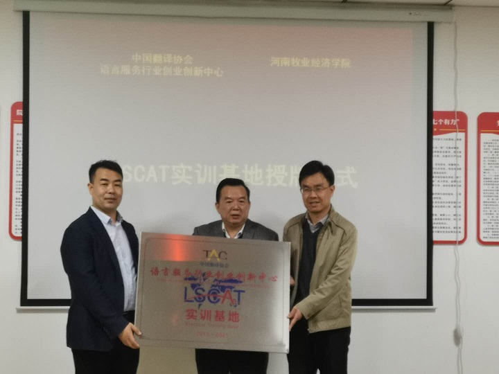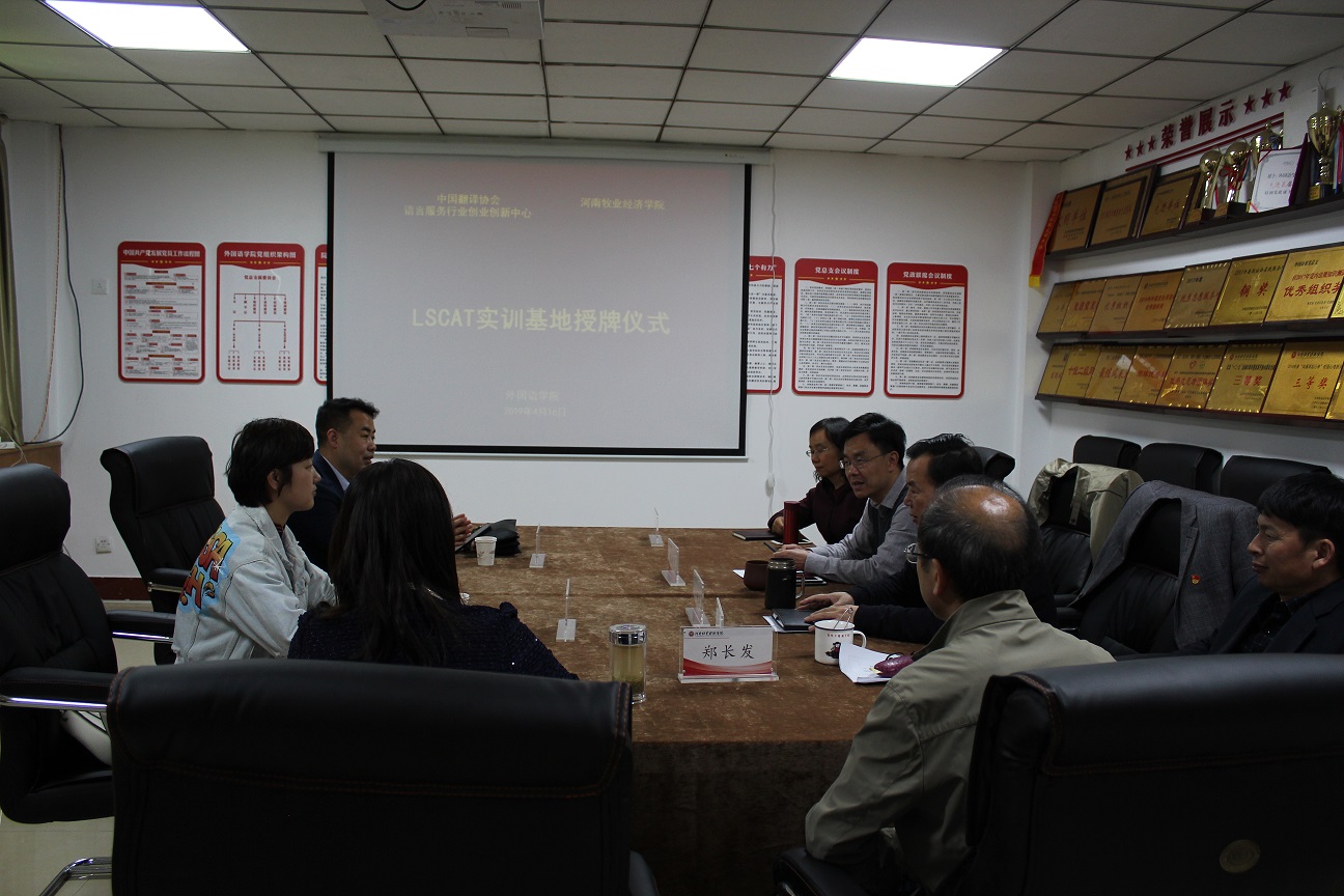 4月16日,太阳成集团122ccvip与中国翻译协会语言服务能力评估(LSCAT)项目实训基地授牌仪式在太阳成集团122ccvip会议室举行。太阳成集团122ccvip领导班子成员、中国翻译协会语言服务行业创业创新中心河南分部主任齐东伟、副主任李媛媛出席了授牌仪式。