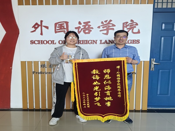 为表达感谢之情,食品与生物工程学院21级的孟怡辰同学向我院副院长闻华赠送印有“师恩似海润桃李,教诲如光引梦飞”的锦旗,该名同学今年顺利考上中国农业科学院研究生。闻华表示:“做老师最开心的是能教到优秀的学生,也会被勤奋好学的学生所感染。除了组织本院学生考研模拟复试外,我和学院其他义务辅导的老师一样,也为个别同学进行了英语辅导,很高兴为他们考研上岸发挥了作用。这份锦旗既是荣誉,更是责任,学院始终将学生成长作为核心工作,未来将继续整合优质资源,为更多学子搭建考研‘助力桥’。”