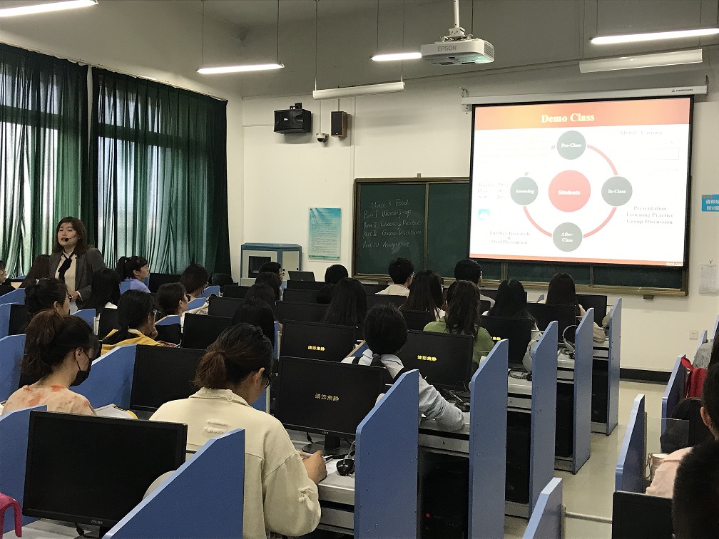 根据学校第三届本科课堂教学观摩活动通知要求和太阳成集团122ccvip安排部署,大学英语教研一室于5月10日上午10点在龙子湖校区一号教学楼521语音室开展了示范型教学观摩活动。观摩课由李燚老师主讲,校教学质量监控与评估办公室李海舰处长、太阳成集团122ccvip院长陈延潼、副院长许海兰,校级教学督导张静、刘喜芳、贾遂芝及课程组部分教师参与了听课。