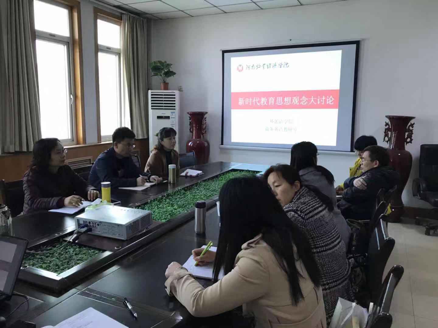 研讨中,老师们紧紧围绕学校新时代教育思想观念大讨论的具体要求以及罗校长、许校长的辅导报告,展开了热烈的讨论。老师们深刻认识到要加强专业思政、课程思政理念,坚持立德树人,根据本专业的特点紧密结合国际国内新变化,准确把握本专业学生思想特点和发展需求,紧密跟踪社会变化,创新专业课教学中的方式方法,不断增强学生的主动性和获得感。张振伟老师、杨志开博士、宋瑶老师、邢琰老师、任平老师、边洁英老师、王丹老师、卢静老师分别结合个人所带课程提出了很多操作性很强的意见,他们谈到在信息化时代背景下,教师应该不断提升信息意识,准确理解各种新技术、新手段对教学改革的深刻影响,准确把握新时代大学生“网络原住民”的时代特征,积极探索适应线上线下教学融合发展的教学范式。温晶晶老师谈到在18版人才培养方案的修订过程中,全面梳理了各门课程的教学内容,使得课程内容、能力培养方面横向、纵向之间很好的吻合,提高各个学期能力培养的契合度,淘汰“水课”、打造“金课”,希望老师们在课堂教学中合理提升了课程挑战度和高阶性,切实提高教学质量。