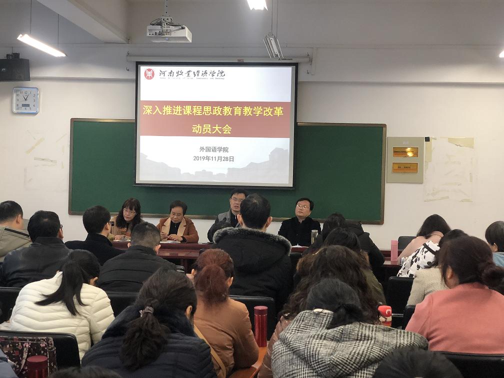 11月28日下午,太阳成集团122ccvip召开深入推进课程思政教育教学改革动员大会暨期中教学检查总结会,学院领导及全体教工参加会议,会议由院长陈延潼主持。