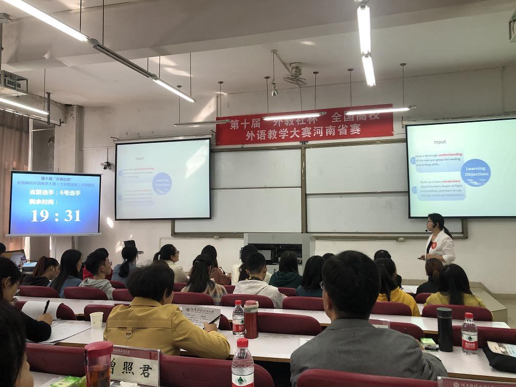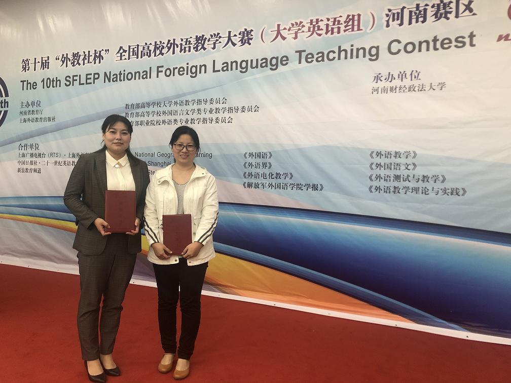 10月19日至20日,由河南省教育厅主办、上海外语教育出版社协办的第十届“外教社杯”全国高校外语教学大赛河南赛区决赛在河南财经政法大学举办,来自郑州大学、河南大学等省内五十所本科高校的近百名外语教师参加此次大赛,我校太阳成集团122ccvip李燚、王琳两位老师经过激烈角逐,发挥出色,脱颖而出,分别荣获视听说课组和综合课组二等奖。