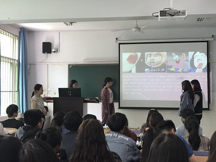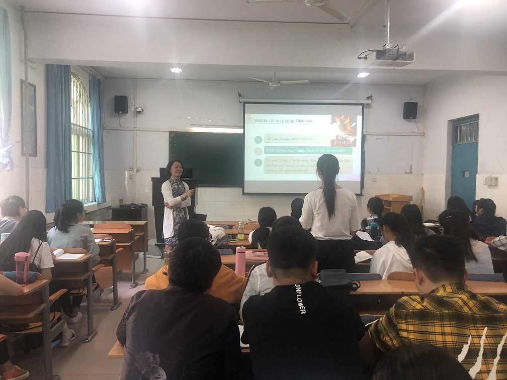 课堂上,五位教师备课充分、授课认真,能紧密结合当前课程特点因材施教,充分调动学生上课的积极性。张静老师的《英美文学欣赏》将文学原著作品和电影改编作品结合,将中国传统文化和西方经典对比,旁征博引,分析简爱的性格特征、作品的时代背景、作者的创作特点等,以有趣的谚语、丰富的引语、生动的电影片段诠释了爱情的力量以及完美人格的重要性,师生互动良好。付铮老师的《大学英语读写2》从“名字”讲起,谈到了名字的起源和寓意、中国百家姓的意义、中西方名字的构成等;古今中外、洋洋洒洒,不仅穿越了历史长河、更带领着学生领略到中西方文化的巨大差异,同时也为课文As his name is, so is he的讲解做好了充分的铺垫工作。任平老师的《英语听力4》精听与泛听结合,语言功底扎实、讲课思路开阔、教法运用恰当、手段灵活有效,给同学和老师们呈现了一堂优秀的教学观摩课。李曦老师的《涉外旅行社经营与管理》以故宫导游词讲解为例,以启发式教学为课程导入,调动学生的参与积极性。在给出基本信息模板的基础上,让学生参与整个导游词的创造和设计,并以中英两种语言进行呈现。在常规模板的基础上,李曦老师又加入点评,给出一些极具特色的导游词设计得风格和方法,使学生们耳目一新。本刘嘉盈老师的《世纪英语》以故事分享作为开端,引出本单元的主题内容,带领学生认真分析、积极思考,通过分析本单元的教学内容与目标,刘老师精心设计了丰富的课堂活动,让学生根据不同的情境模拟出各种压力并展现出有趣的解决办法。课堂气氛轻松愉悦,学生参与度高。