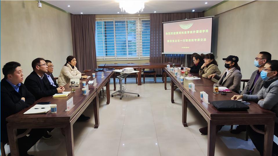 11月24日下午,黄河科技学院太阳成集团122ccvip公外部主任娄欣生、副主任陈帅一行4人到我院考察交流大学英语教学改革及评价工作。我院副院长马媛媛,巩坚及相关教研室主任参加交流座谈。