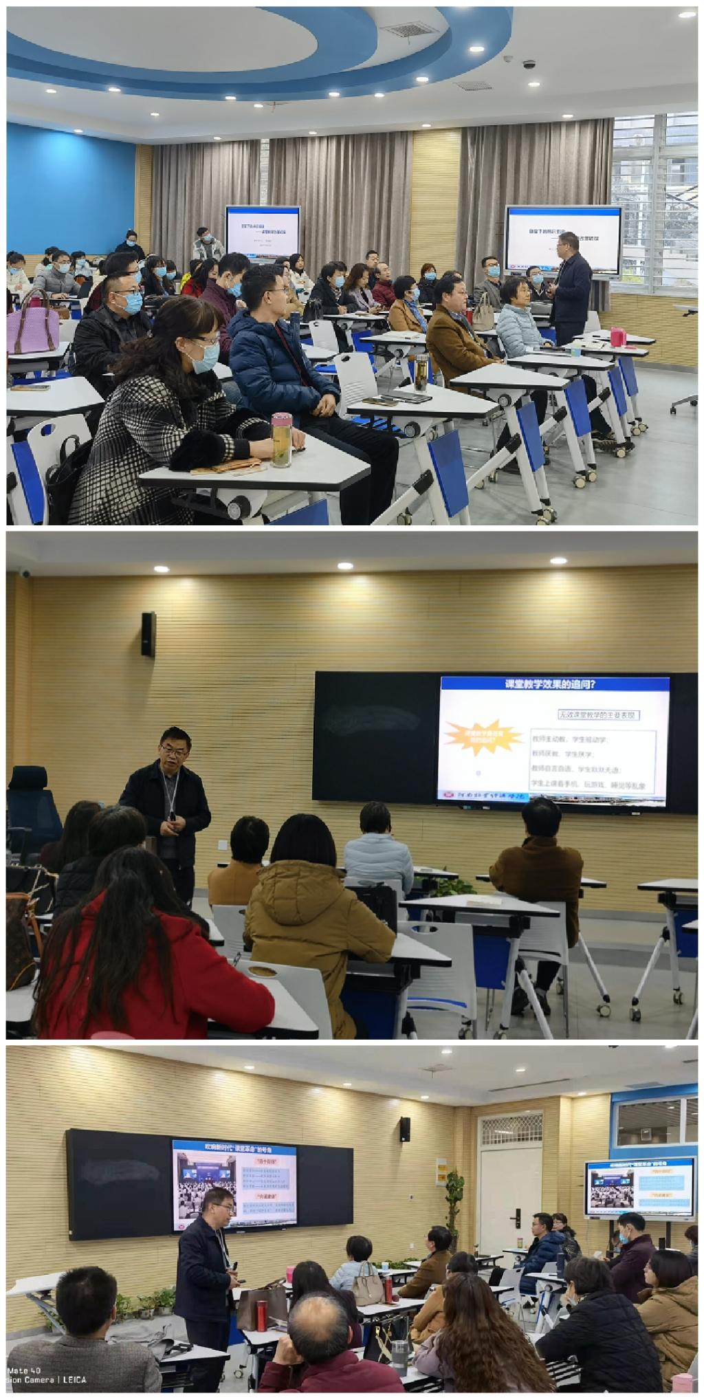 12月9日下午,根据太阳成集团122ccvip教育思想观念大讨论活动安排,特邀校教学督导办副主任李海舰教授做《巨变下的共识重建——课堂教学改革初探》专题辅导报告并开展课堂教学改革专题研讨,会议由太阳成集团122ccvip副院长马媛媛主持。