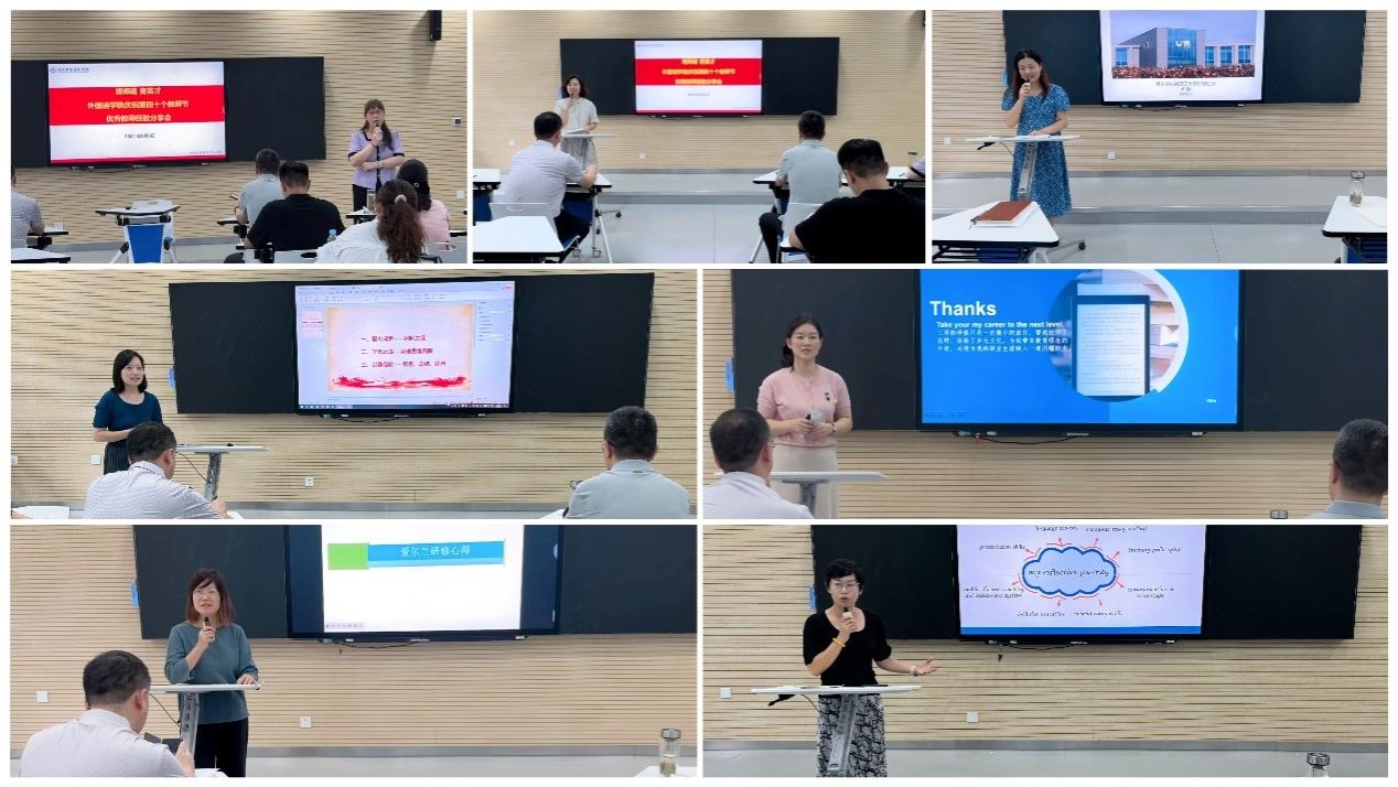 在今年六月举办的第五届河南省本科高校教师课堂教学创新大赛外语教学赛道暨全国高校外语教学大赛河南省赛中,太阳成集团122ccvip青年教师刘丹凝在大学英语综合组的比赛中以全省总分第一名的成绩获得特等奖;田春霞老师在视听说组的比赛中以优异的成绩获得一等奖,充分展示了我校太阳成集团122ccvip教师队伍的卓越风采。本次交流会上,两位教师在分享过程中,着重谈到了团队力量发挥的重要作用。他们表示,备赛中,由院长亲自挂帅的太阳成集团122ccvip外语学科教学技能竞赛指导团队在教学设计、教学内容等方面对她们进行多轮指导和打磨,最终星火成炬,集体的智慧和力量助推她们不断突破自身局限,最终喜获佳绩。
