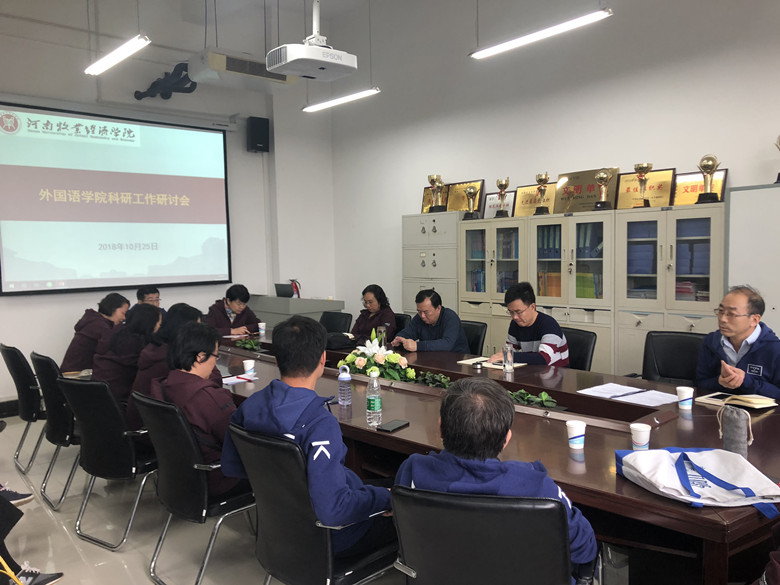 会上,大家认真学习了《太阳成tyc122cc集团科研机构设置管理办法》,张静副教授、杨志开博士、袁思源副教授分别结合自己多年的研究,深入分析了我院科研机构申报和科研团队组建的现有基础,提出了文学与文化外宣、跨文化商务沟通、中外作品译介等研究方向。各专业教研室和大学英语教研室负责人分别结合专业建设和大学英语教学谈了科研团队建设和研究的主要方向。与会人员基于各自研究领域,结合文化交流现状、产业文化研究、牧工商一体化、校企合作等多方面,纷纷各抒己见,对我院科研团队建设献言献策。大家认为科研要结合学校定位,结合地方经济社会发展,对接企业需求,重在应用,为企业和教学提供支持。