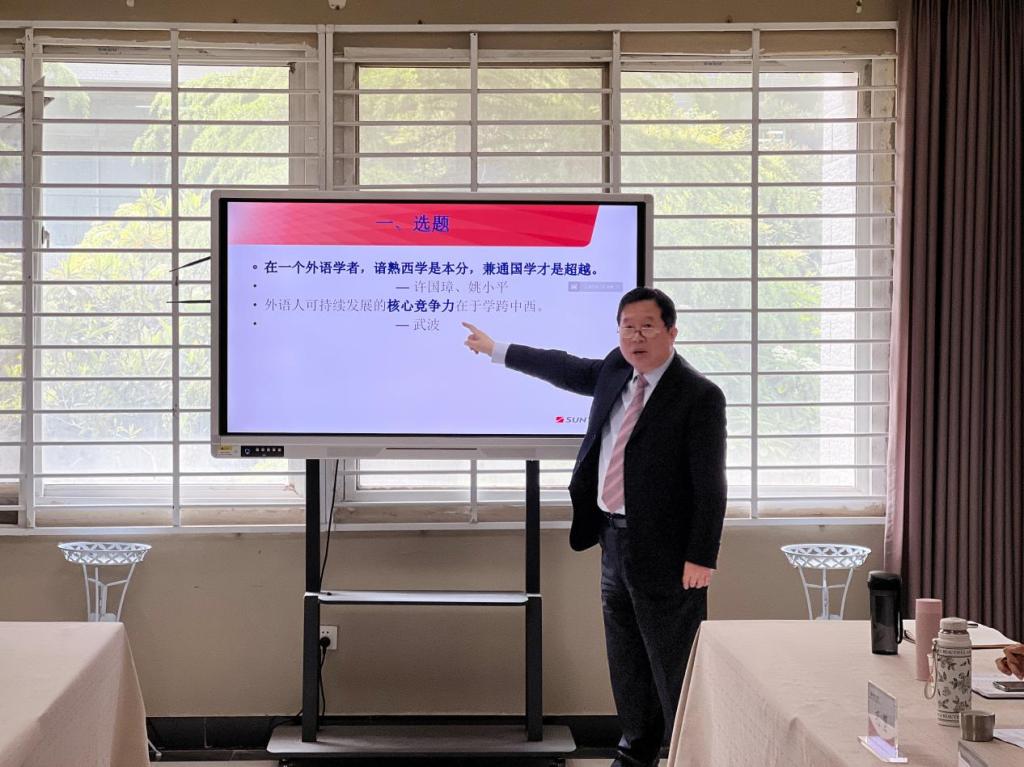 陈院长在总结发言中指出,武波教授的指导高屋建瓴,极具现实意义,老师们在申报国家社科基金项目时,要深刻领悟项目申报精神,明确立场,积极展现中国特色、中国风格、中国气派;在选择申报课题时,应当先考虑能够体现中国特色社会主义理论体系、中华优秀传统文化、以及中国在国际事务中的积极作为的课题。此外,陈院长强调,对外语老师而言,国家社科基金项目中的中华学术外译项目非常重要,它不仅是一个学术交流的平台,更是一个展示中国文化、传播中国声音的重要途径。让世界了解中国,理解中国,是每一个中国学者的责任和使命。