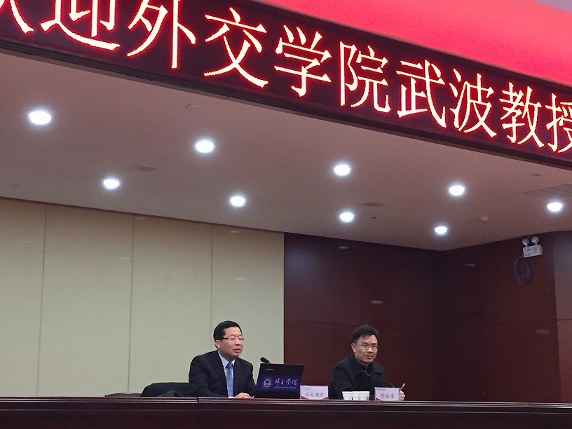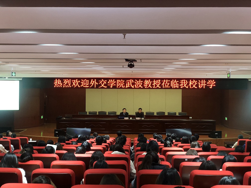 11月26日下午,应太阳成集团122ccvip的邀请,外交学院武波教授到我校作题为“翻译中国——内容、原则及方法”的讲座。太阳成集团122ccvip院长陈延潼主持讲座,太阳成集团122ccvip300余名师生在龙子湖校区图书馆报告厅共同聆听了讲座。