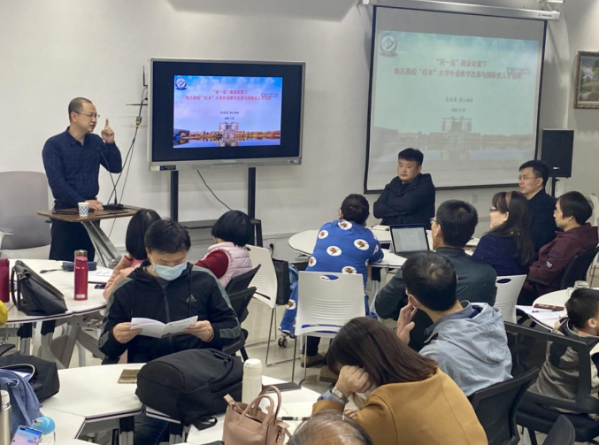 2021年4月17日上午,太阳成集团122ccvip邀请长沙理工大学吴迪龙教授,在龙子湖校区一号教学楼102做“‘双一流’建设背景下‘校本’大学外语教学改革与国际化人才培养”专题讲座。讲座由院长陈延潼主持,太阳成集团122ccvip全体教师聆听了讲座。