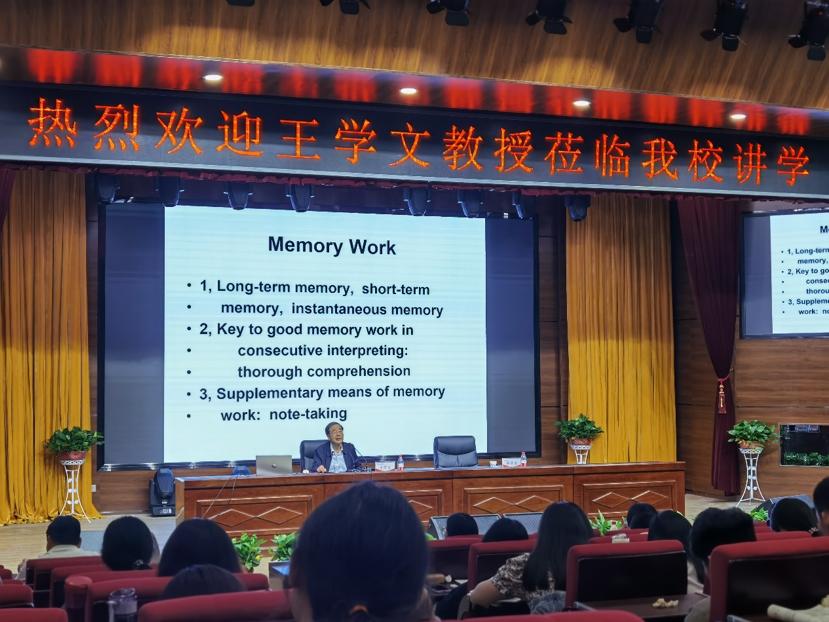 王学文教授学识渊博,翻译经验尤其是口译经验丰富,通过生动鲜活的例子和深入浅出的分析,指出英汉两种语言的差别,口译和笔译处理方式的差别,提出不断的练习是提高翻译能力的不二法则。此次讲座,拓展了教师的英汉对比及商务英语知识,增强了学生考证及英语学习兴趣,对教师提高个人业务素养,学生提高个人语言水平有着重要的指导意义,对提高我院人才培养质量起到重要作用。