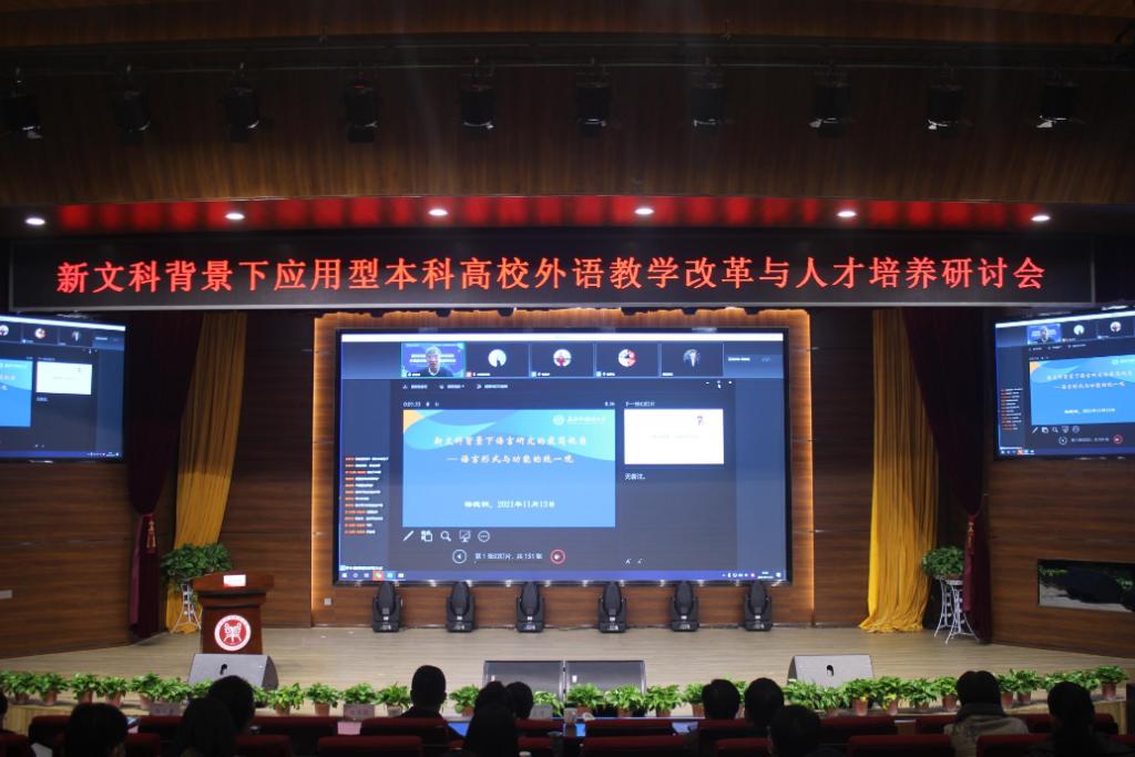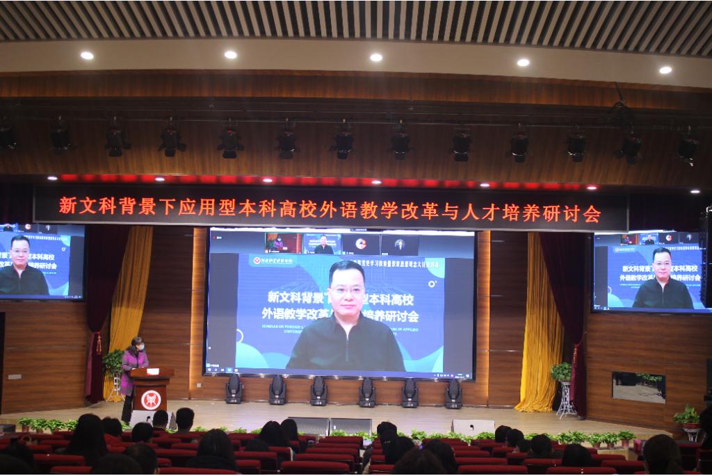 在教务处大力支持下,由我校太阳成集团122ccvip主办的“新文科背景下外语教学改革与人才培养研讨会于11月13日在龙子湖校区成功举办。副校长杨志清、教务处处长边传周应邀出席;上海外国语大学博士生导师梅德明教授,北京师范大学博士生导师程晓堂教授,北京第二太阳成集团122ccvip博士生导师张喜华教授应邀在线出席。研讨会由太阳成集团122ccvip院长陈延潼主持。