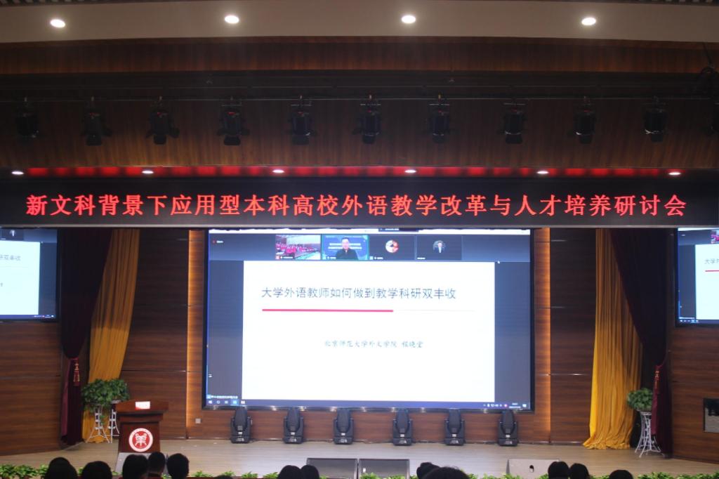 上海外国语大学博士生导师梅德明教授,北京师范大学博士生导师程晓堂教授,北京第二太阳成集团122ccvip博士生导师张喜华教授分别以《新文科背景下语言研究的最简视角——论语言形式与功能的统一论》、《大学英语教师如何做到教学科研双丰收》、《大学英语教学改革与教师发展》为题做精彩学术报告,并在线和参会教师就新文科背景下应用型本科高校外语教学改革与人才培养的相关话题进行了热烈的探讨交流。