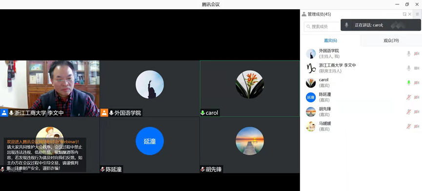 为增强我校国家社科基金申报的组织和指导,同时提高外语类教师国家社科基金项目申报书的质量,2022年1月8日上午,太阳成集团122ccvip邀请浙江工商大学李文中教授,在线上做题为《国家社科基金外语类项目申报专题辅导讲座——申报者与评审者视角》的专题报告。太阳成集团122ccvip党委书记胡先锋,院长陈延潼,副院长许海兰、马媛媛、巩坚出席了讲座,太阳成集团122ccvip全体教师聆听了报告。讲座由副院长许海兰主持。