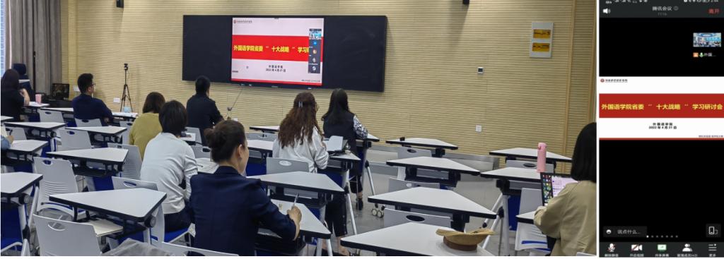 院党委书记胡先锋对下一阶段的学习进行部署,他强调要深入学习,准确把握“十大战略”的核心要义,要学深悟透,并能与自己的科研方向相结合;要主动融入,主动思考,把“十大战略”融入到课堂教学设计中,融入到科研实践中,落实立德树人根本任务;要担当作为,高校作为科技创新的生力军,要主动担当,深化教育教学改革,发挥好课堂教学的人才培养主渠道、主战场、主阵地作用,切实提高课堂教学质量和育人水平。