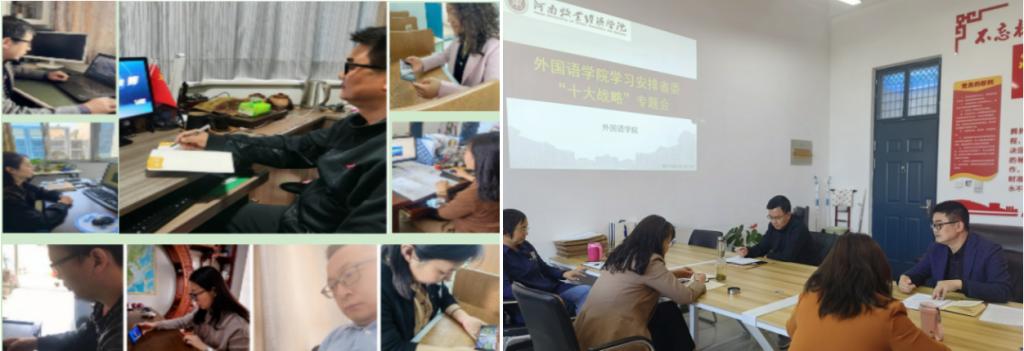 4月19日上午,院党委理论学习中心组进行集中学习,院党委书记胡先锋领学了《全面科学实施“十大战略”》的文章,与会者进行了学习分享;组织全院党员教师线上收看了由省委组织部、河南电视台制作推出“十大战略”云课堂第一期节目《创新就是创未来》,通过观看视频,广大党员教师深化了对“创新驱动、科教兴省、人才强省战略”的认识。
