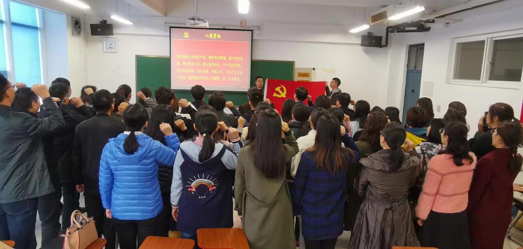 最后,全体党员面向党旗,重温入党誓词,进行了庄严的宣誓仪式。