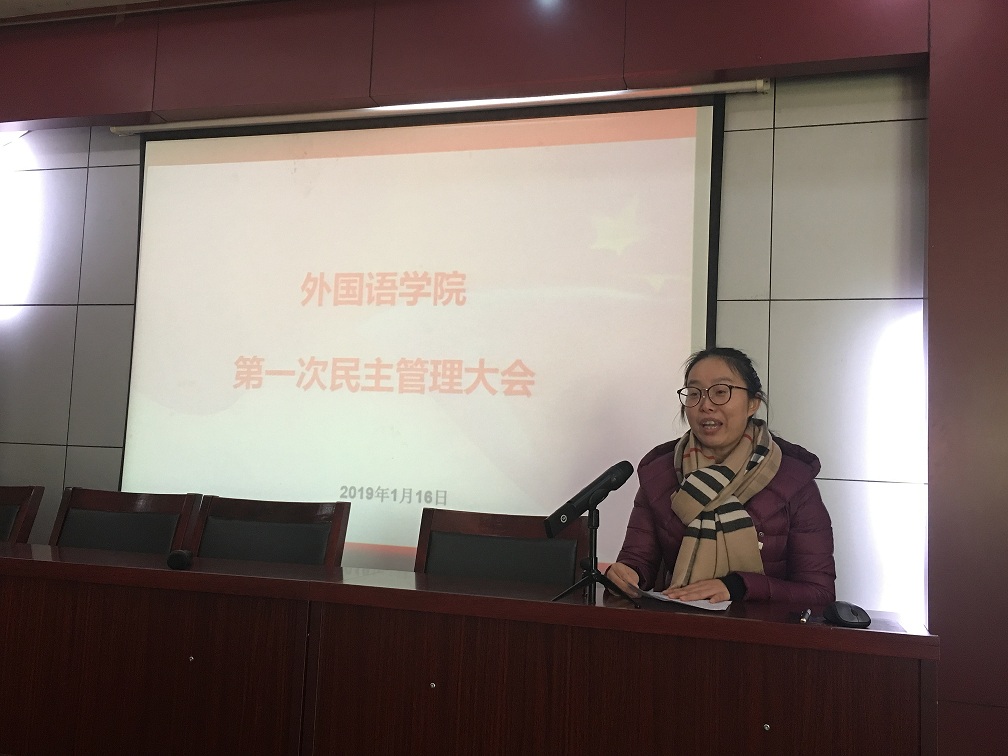 太阳成集团122ccvip第一次民主管理大会于2019年1月16日在英才校区太阳成集团122ccvip会议室召开,院领导班子及全体教职工参加了会议,会议由太阳成集团122ccvip分工会副主席马媛媛主持。