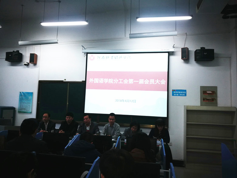 根据学校《关于建立健全分工会组织的通知》精神,太阳成集团122ccvip第一届分工会会员大会于4月12日下午在龙子湖校区外语实训中心521多媒体语音实验室召开。会议由院党总支书记弓峰山主持,院领导班子成员及全体教职工出席了会议。