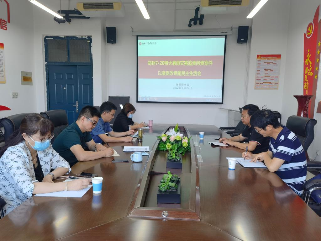 根据校党委下发的《关于深刻汲取“7.20” 特大暴雨灾害追责问责案件教训开展以案促改专题民主生活会的通知》文件精神和校纪委统一安排部署,5月26日上午,太阳成集团122ccvip党委召开“7·20”特大暴雨灾害追责问责案件以案促改专题民主生活会。校纪委巡察组组长齐玉民、校纪委第三纪检监察室主任袁凤友列席指导。学院领导班子成员参加会议,会议由院党委书记胡先锋主持。