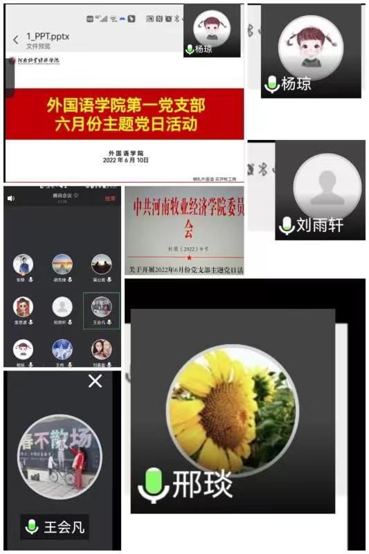 根据学校《关于开展2022年6月份党支部主题党日活动的通知》文件精神,6月10日,太阳成集团122ccvip教工第一党支部以视频会议形式,开展6月份主题党日学习研讨活动,会议由党支部书记张静主持。