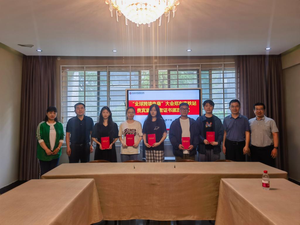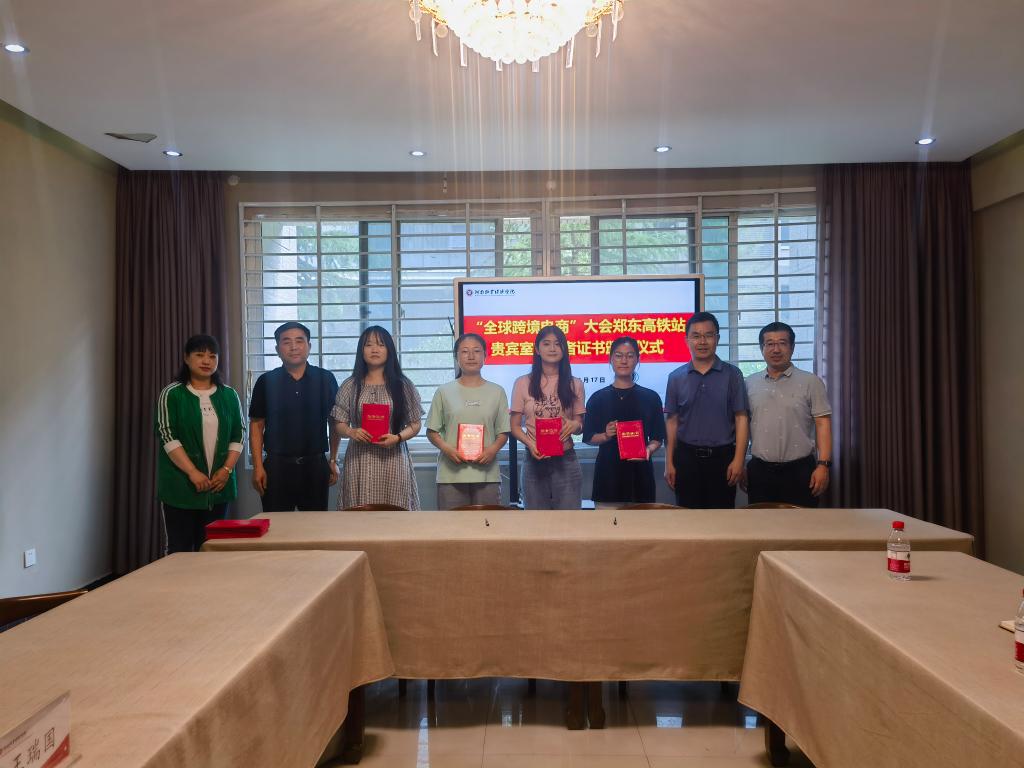 签字仪式后,王瑞国书记为我院协助中原铁道国际旅行社完成第七届全球跨境电子商务大会郑州东站贵宾接待任务的师生颁发了优秀志愿者证书并参观了我校虚拟仿真语言学习中心。