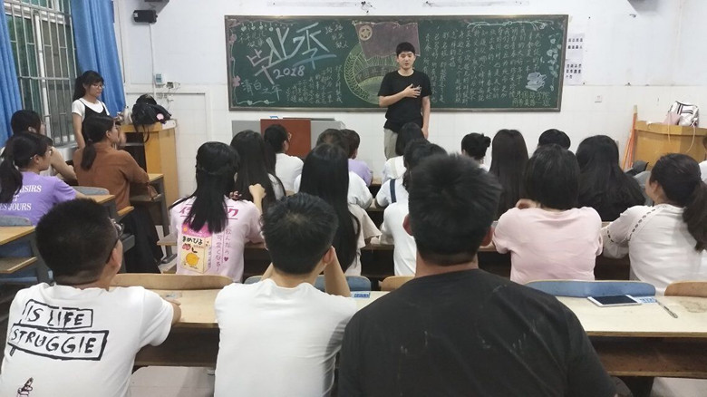 在校合唱队队员的领唱中,同学们吟唱着“巍巍邙山松,滔滔黄河情,邙山怀抱育英才……”,悠扬的校歌中满含学生对母校深深的依恋之情。15应一的一名毕业生说到:“再听校歌,歌词沉到了心里,心头紧紧的,鼻头有点酸。离开母校,好似离开家远行。内心有伤感,也有害怕,再也没有一个这样温暖的家,约束自己,警示自己。”15商二的一名毕业生说到“校训:尚严崇实 善知敏行是母校送给我们的礼物,带着学校的校训,走出校门,用校训要求自己,让自己时刻保持警醒,做一个优秀的人。”在他的提议下,大家一起高声朗读了数遍校训。“有时间多出去看看,开阔眼界,多学习知识,提升内涵,珍惜现在,希望我们可以在大学里提升自己,变得优秀。”这是毕业生对大一学生的寄语。之后,大一的同学纷纷表达了自己对毕业生真挚的祝福,希望他们可以一帆风顺,心怀梦想,前程似锦!愿他们走出半生,归来依然少年!