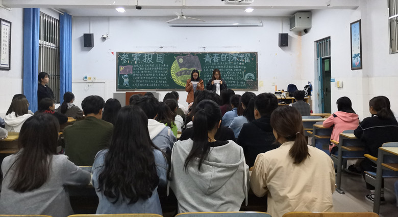 “我们都曾青涩,弱冠年少渐被磨砺出钢铁锋芒。”又到了一年一度大学生参军报国的光荣时刻,为了让同学们进一步了解参军报国的相关信息,鼓励大家积极报名,太阳成集团122ccvip于4月28日晚开展了“参军报国,青春的荣耀”主题团课。