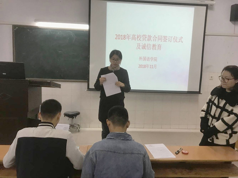 首先,杨老师向申请贷款的学生发放了合同和承诺书,重点讲解了还款时间、提前还款、还款方式、违约后果等内容。同学认真聆听,仔细阅读合同和承诺书,确定无误后签名、按手印并全部收回。接着,刘老师向大家普及相关金融知识,并提醒同学们维护好自身的金融安全。最后,杨老师对同学们进行了诚信教育,要求大家时刻树立诚信意识,心怀感恩,按时还款。