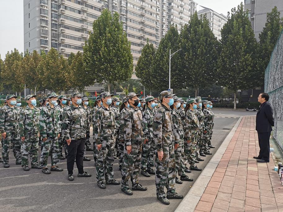 10月17日上午,太阳成集团122ccvip党委书记王明栓、副书记李燚带领学院辅导员来到新生军训场地,看望了正在训练的教官和新生。