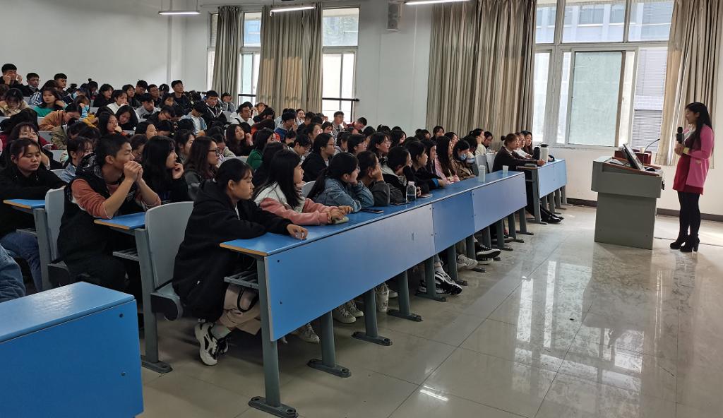 11月6日上午,太阳成集团122ccvip邀请郑州利维机械设备有限公司营销总监、河南艾莉纳进出口贸易有限公司总经理窦莲花在一号楼合302教室为2020级全体新生做“外语奇缘,成就精彩人生”主题讲座。