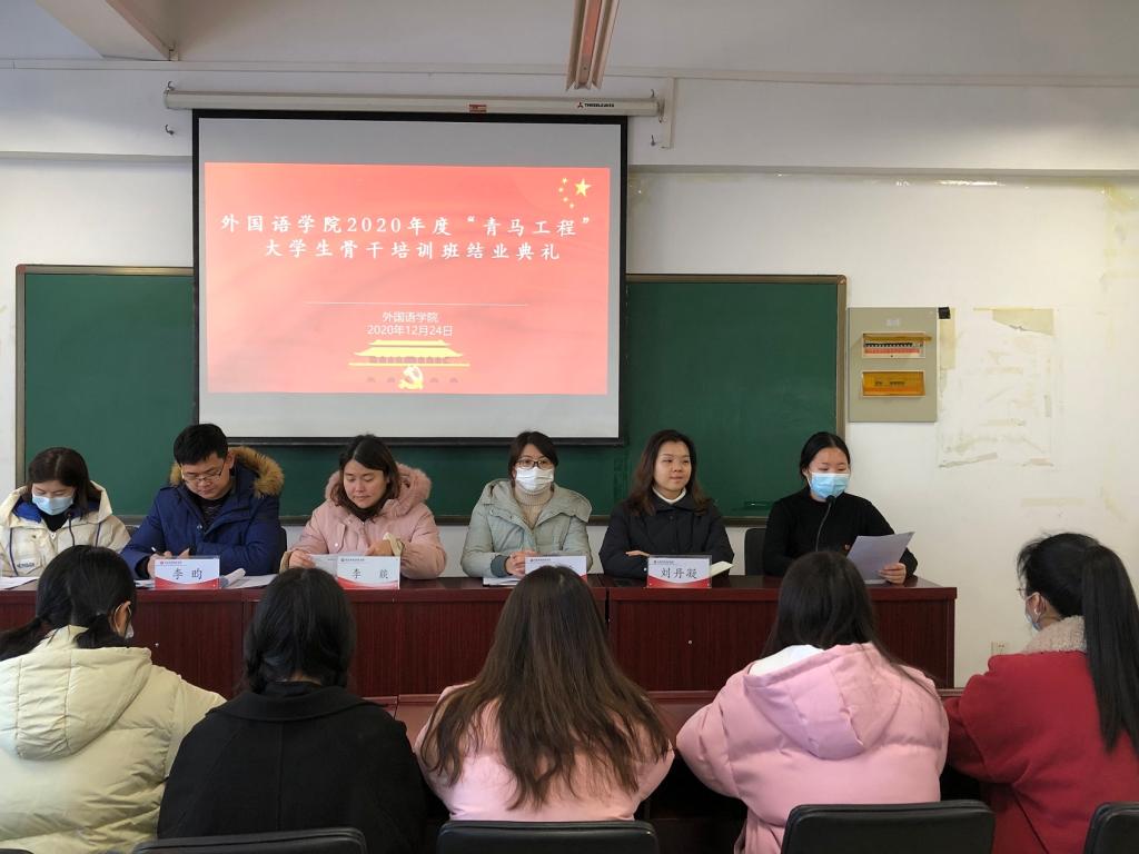 为了坚定同学们的理想信念,使之成为一名优秀的青年马克思主义者。12月24日中午12:40我院在一号教学楼C517举行了2020年度“青马工程”大学生骨干培训班结业典礼,党委副书记李燚、辅导员老师莅临典礼,会议由曹贝贝老师主持。
