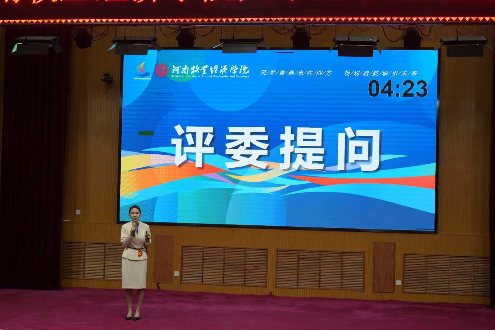 在决赛环节中,孙天琪紧扣商务英语专业的发展脉络,深入分析行业发展趋势,将个人兴趣、职业目标与国家社会需求紧密结合。孙天琪对职业规划的深刻理解、清晰的逻辑表达,充分展现出扎实的专业素养与较强的综合素质。