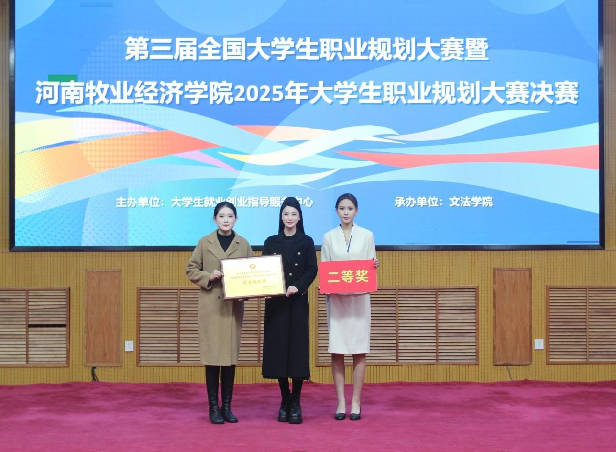 12月18日,第三届全国大学生职业规划大赛校级总决赛在英才校区学术报告厅圆满落幕。我院学子23级商务英语02班孙天琪荣获成长赛道二等奖,我院获优秀组织奖。