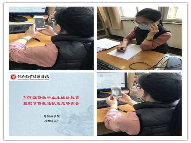 根据学校关于助学贷款毕业生毕业确认等有关事宜的工作要求,为积极落实学院诚信教育活动安排,持续做好学院国家助学贷款毕业生的贷后管理工作,太阳成集团122ccvip于4月27、28日通过线上视频、电话会议等形式分别召开了2020届高校贷款毕业生和部分生源地贷款学生诚信教育暨助学贷款还款还息培训线上会议,会议由学院资助专干田春霞老师主持。