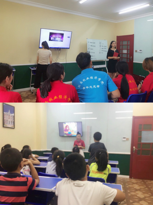 在于欢英语总部,人力资源部副总和人事经理对服务队来到企业表示热烈的欢迎。人事经理张倩是我院往届的毕业生,她告诉队员们自己也曾参加过社会实践,觉得这一段经历是成长中的一抹亮色,丰富了自己的体验,增加了对社会的了解。随后她带领队员们到校区观摩学习。一部分人员进班试听,这次的试听对队员们有很大的触动,班上的学生年龄最小的3岁,最大的不超过12岁,班级老师用丰富的肢体语言和寓教于乐的教学方式去吸引孩子们的注意力。队员陈景润说:“老师的教学水平很专业,对待孩子也很有耐心,孩子也能很快融入课堂。他们的教学不是通过牢记单词语法让学生死记,而是寓教于乐,通过颠覆式的学习,让孩子在玩乐中学会知识。对于我们接下来在实践中去做老师,传授知识,有很大的帮助。”教学总监王老师给另外一部分人员讲解了于欢英语的课程、教学理念等基本情况。王老师询问队员们的梦想和对做老师的想法,队员们逐一回答,互动良好。王老师分享了自己多年从事教育行业的感受:工作的理念是相通的,都是发挥自己最大的价值、服务更多的人。之后,队员们交流分享了自己对于梦想、价值和服务的想法。队员靳洋洋说:“今天来到这儿,触动挺多的。总部办公环境优美,员工勤奋热情,感受到这个企业的朝气蓬勃,给人一种很值得信赖的感觉。教学部设施独特,有一个好的教学环境。感觉这儿的员工对自己的工作充满热情,个个看起来精神饱满,富有个人魅力,很吸引人。王老师说到要发挥个人价值服务更多人也让我对所做的事情有了更多的思考。”