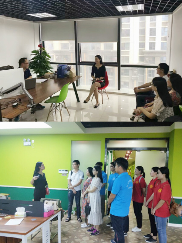 近日,太阳成集团122ccvip暑期社会实践小分队队指导老师和队员们一起走进于欢英语,了解企业,学习专业,增强实践服务本领。