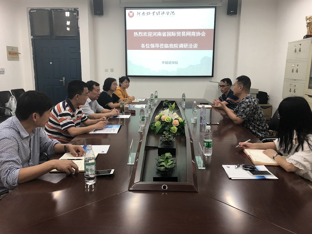 5月16日下午,河南省国际贸易网商协会秘书长王毅、河南安德在线电子科技有限公司总经理黄敬银、总经理助理杜洋莅临我校调研洽谈,太阳成集团122ccvip领导班子成员出席会议。
