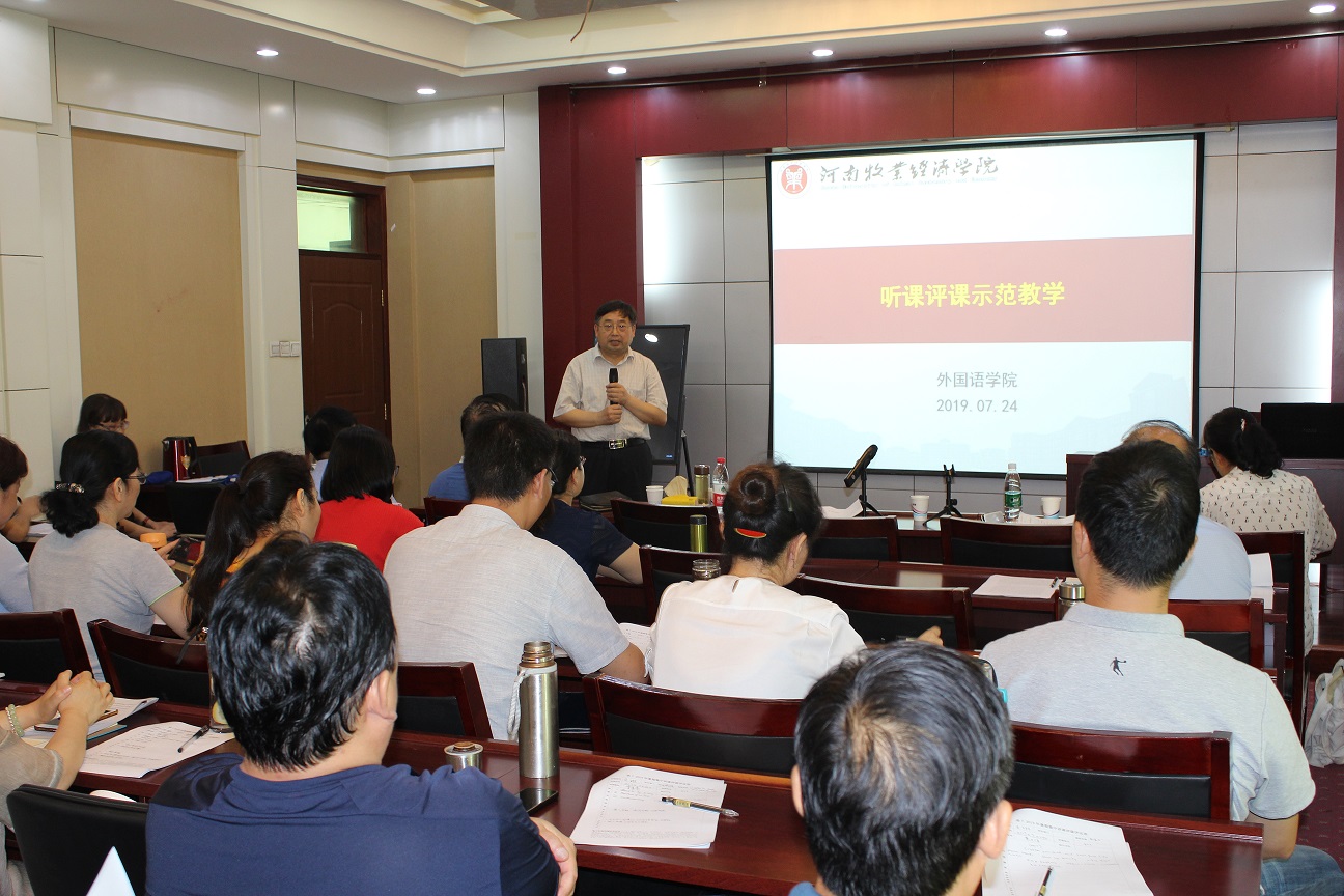 根据学校暑期迎评促建工作安排,太阳成集团122ccvip于7月22日开始进入“磨课”阶段,全体教师参与到“讲课评课”的环节,为做好本阶段工作,学院遴选三名教师于7月24日在英才校区602会议室进行“听课评课示范教学”活动,太阳成集团122ccvip全体教职工参加,副院长许海兰主持此次活动。