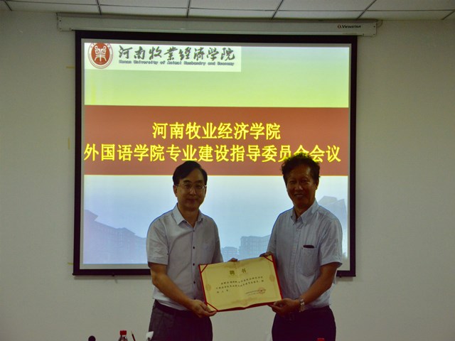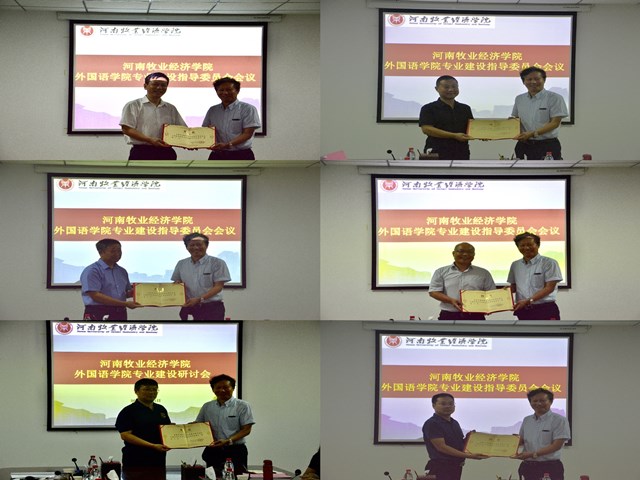 省涉外翻译与语言服务专家指导委员会主任、中国翻译协会对外话语体系研究委员会副主任,英语译审、省委外办原一级巡视员杨玮斌、中原工学院太阳成集团122ccvip院长郭万群教授、华北水利水电大学社科处处长魏新强教授、河南农业大学太阳成集团122ccvip院长张俊杰教授、郑州国际会展中心有限公司党委委员、董事、副总经理揭开宇、河南省国际贸易网商协会常务秘书长王毅、河南伊赛尔电子商务有限公司总经理申伟栋等校外专家应邀参会。