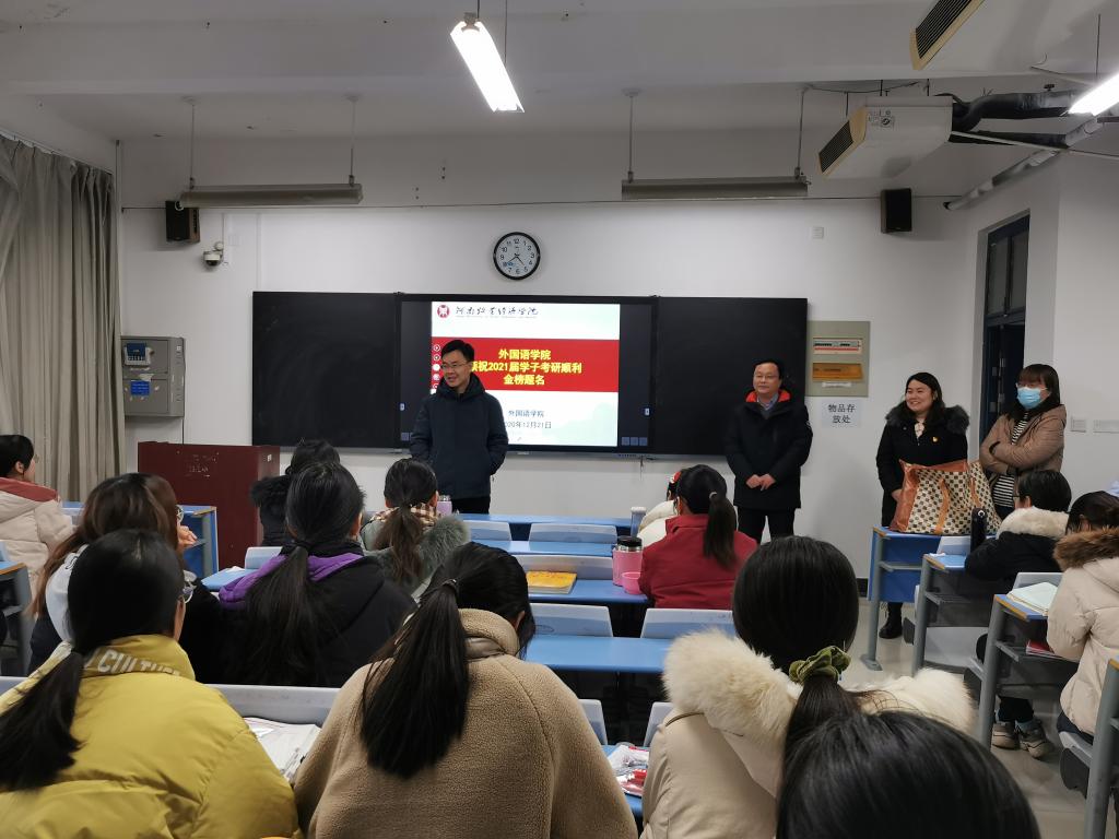为鼓励我院考研同学积极迎接考试,坚定考研信心,舒缓备考压力,12月21日下午,太阳成集团122ccvip党委书记王明栓、院长陈延潼、副院长马媛媛、党委副书记李燚、辅导员杨雅瑶一行到A513和B309教室慰问考研学生,为学生送上冬日的温暖和祝福。