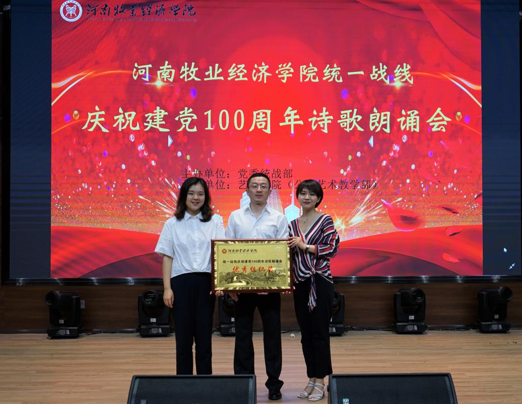 在近日圆满落幕的我校“永远跟党走 奋斗新征程”庆祝中国共产党成立100周年教职工红歌合唱比赛中以及“太阳成tyc122cc集团统一战线庆祝建党100周年诗歌朗诵会”上,我院分别获得了二等奖和优秀组织奖的荣誉。