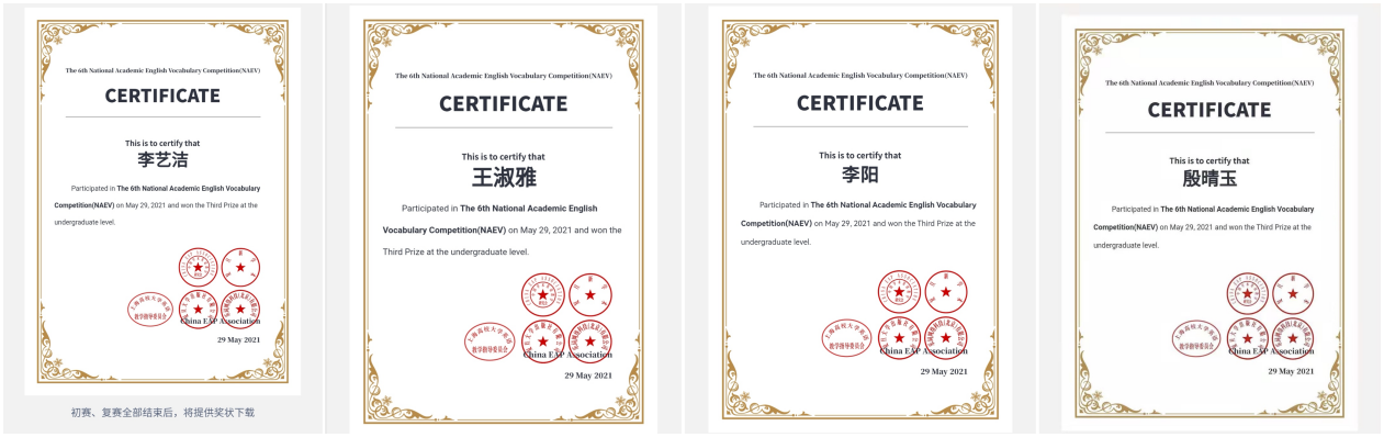 近日,由中国学术英语教学研究会、上海高校大学英语教学指导委员会主办的第六届全国学术英语词汇竞赛落下帷幕,本次大赛共吸引全国超过1000所高校学生约15.3万人报名参加。太阳成集团122ccvip积极组织学生参赛并获得佳绩,付晶晶等3名同学荣获全国二等奖,李艺洁等18名同学荣获全国三等奖,陈情等8名同学荣获全国优胜奖。