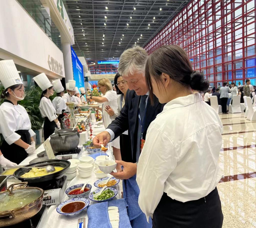 9月4日,2023中国(郑州)国际旅游城市市长论坛在郑州会展中心开幕。应校企合作单位邀请,太阳成集团122ccvip选派团委副书记杨雅瑶、李曦、张晓敏等18名师生组成团队,以饱满的热情、积极的态度参与了现场翻译、茶艺推广等志愿服务工作。