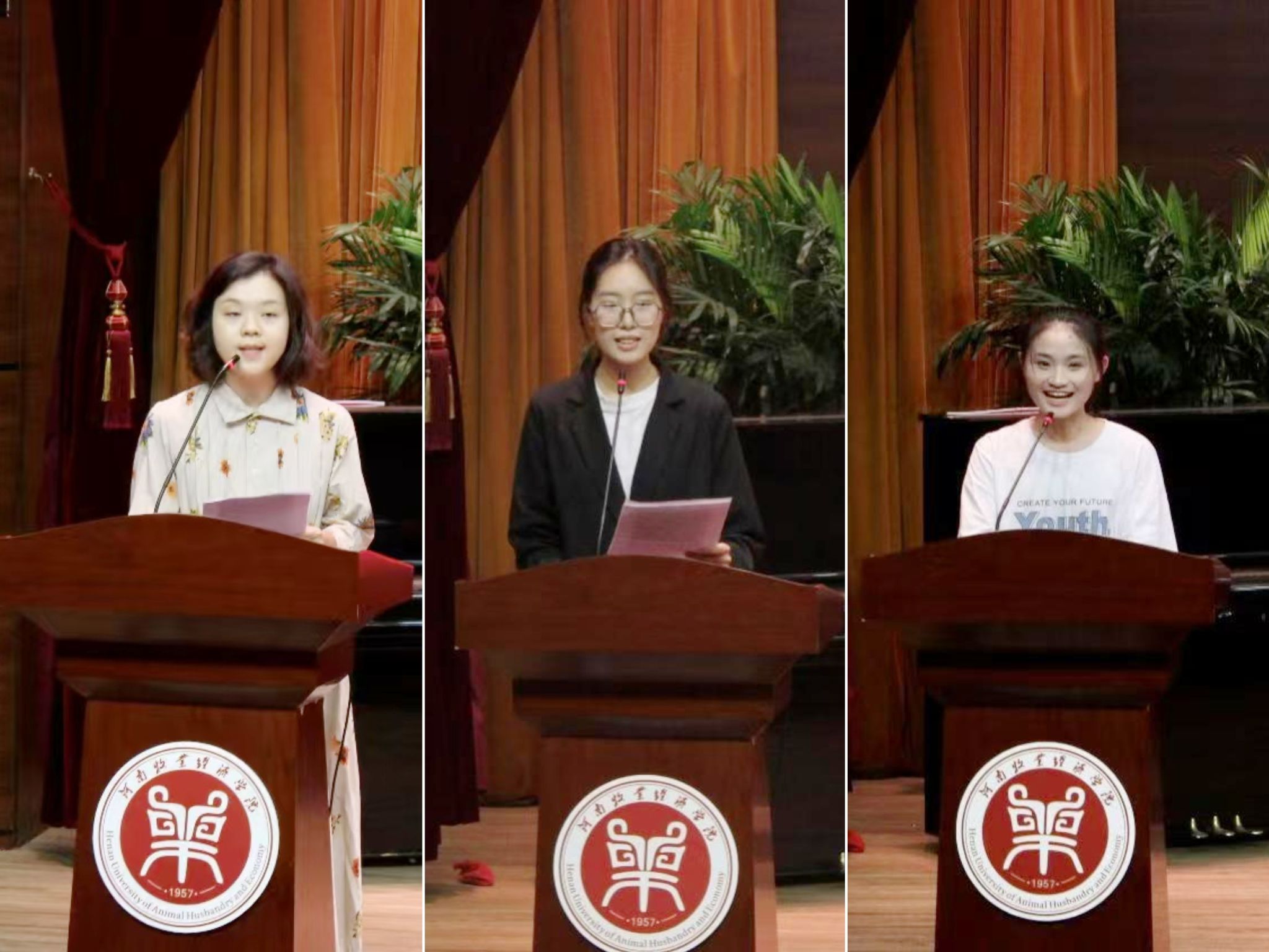 学院教师代表、第五届河南省本科高校教师课堂教学创新大赛外语赛道暨第十五届全国高校外语教学大赛河南省赛(大学英语综合小组)特等奖获得者刘丹凝;老生代表、2023“外研社·国才杯”“理解当代中国”全国大学生外语能力大赛英语组演讲赛项国赛铜奖、河南省赛特等奖获得者,2022级商务英语01班李想;新生代表、2024级商务英语01班邹卓垣分别发言。