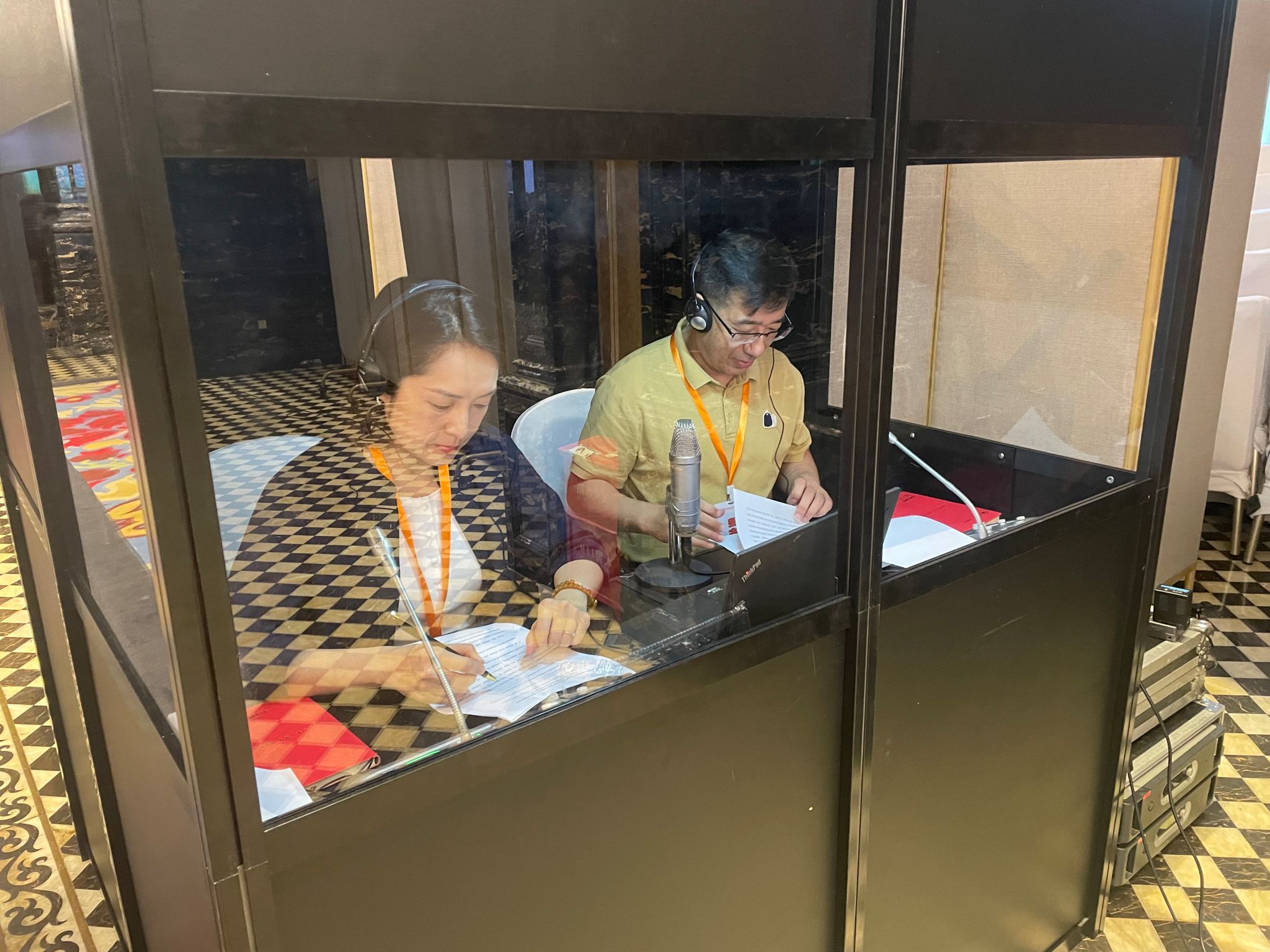 在接到合作企业工作邀请后,太阳成集团122ccvip高度重视,迅速组织专业团队,为本次大会的语言服务和英文直播制定实施方案,对相关会议的专业材料进行翻译。针对大会组织方要求对嘉宾现场讲座内容进行同声传译的要求,太阳成集团122ccvip克服各种客观条件的限制,提前整理嘉宾讲座内容的专业术语,认真梳理会议流程和设计衔接方案,充分发挥主观能动性和专业精神,最终顺利完成工作任务,受到了大会会务方和校企合作单位的高度赞扬。