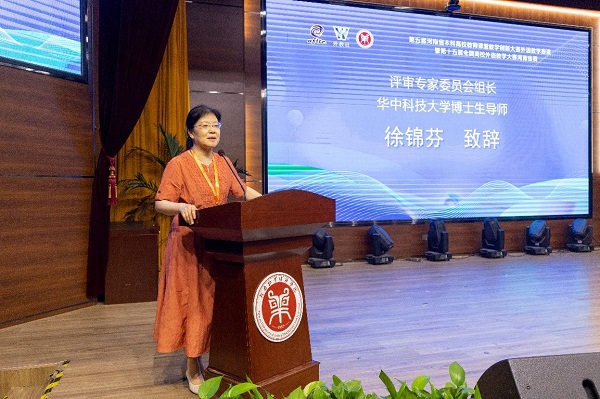 赛事评委会专家组组长、华中科技大学博士生导师徐锦芬作为评委代表发言。她表示,外语教育在高等教育体系中,占据重要地位。此次比赛对教师选手之间相互学习,提升外语教学素养具有重要作用。希望各位选手在比赛中创新教学形式,展示教学风采,为提升培养综合素质能力的人才打下坚实基础。